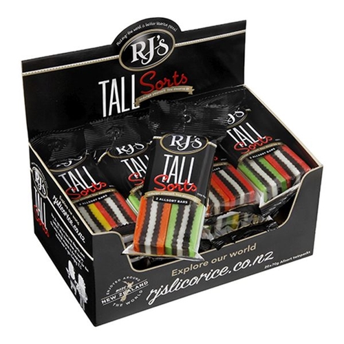 RJ’s Tallsorts are layer after layer of licorice fun and include two delicious long licorice Allsorts per pack.