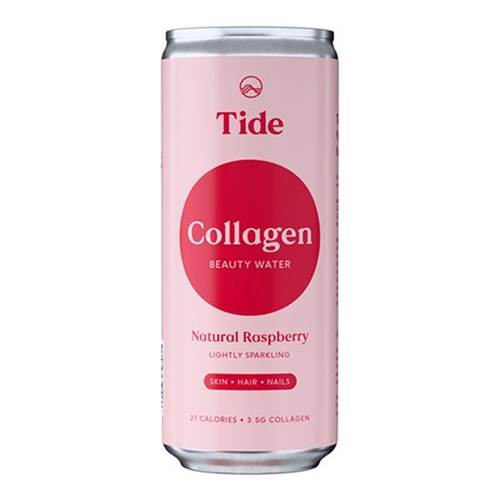 "The sophisticated fusion of lightly sparkling water and sun-ripened raspberry in our premium marine collagen beauty water. Each refreshing can delivers 3.5g of highly bioavailable collagen peptides, thoughtfully crafted to support your skin's natural radiance and vitality.Our signature flavours balances perfectly with delicate bubbles, creating a refined drinking experience with just 27 calories per can. We've carefully formulated this beauty-enhancing drink using only natural flavours and zero artificial sweeteners, ensuring every sip is as pure as it is pleasurable.Sourced sustainably from MSC-certified wild-caught fish, our marine collagen peptides are enzymatically processed for optimal absorption, helping to promote collagen synthesis for healthier skin, hair, and nails. The convenient 250ml aluminium can preserves the potency of our premium ingredients while supporting our commitment to environmental responsibility.Perfect for your daily beauty ritual, enjoy Tide Collagen Water chilled as a morning refreshment, afternoon pick-me-up, or post-workout boost. With consistent daily consumption, you're investing in your skin's future while savouring the present moment."